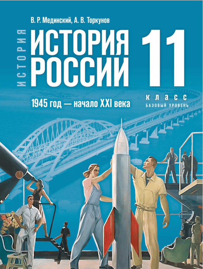 The cover of a Russian history textbook for 11th grade, which portrays the West as an enemy of Russia and Ukraine as its lackey.