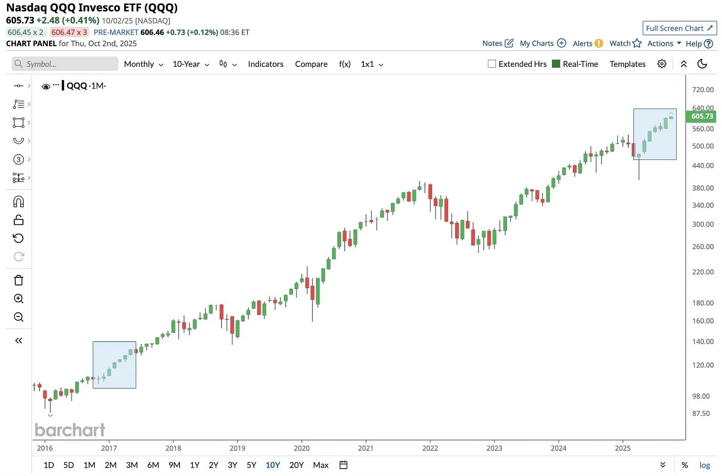 Take a look at the Nasdaq over the last 7 months. It’s a thing of beauty. It has been up 7 months in a row. The best streak since 2016-2017.