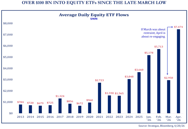 2. Over $100B into Stock ETFs Since Late March Low