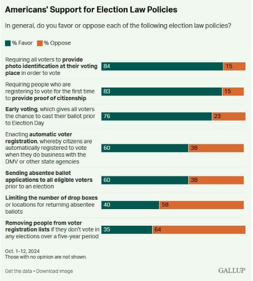 10. Americans Support for Election Law Policies-Gallup