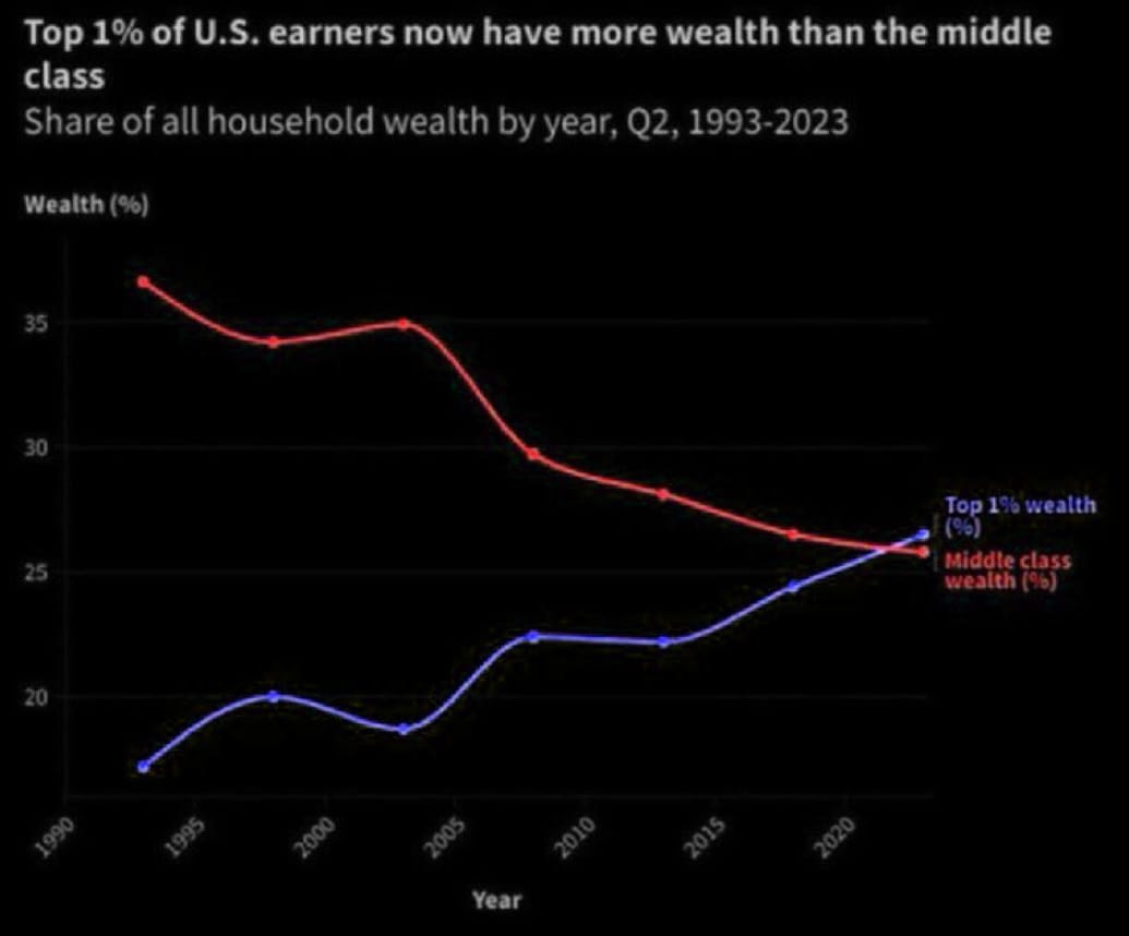 8. Top 1% of Earners Now Have More Wealth than Middle Class America Combined