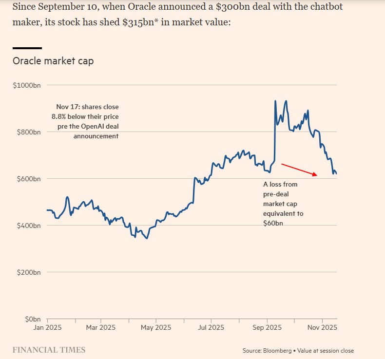 5. ORCL ChatGpt Announcement of $300B Deal….Since Event Stock Lost $315B Market Cap