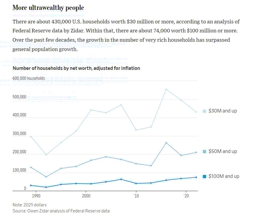 WSJ The number of Americans worth eight or even nine figures is up markedly. It’s transforming the U.S. economy. Rachel Louise Ensign